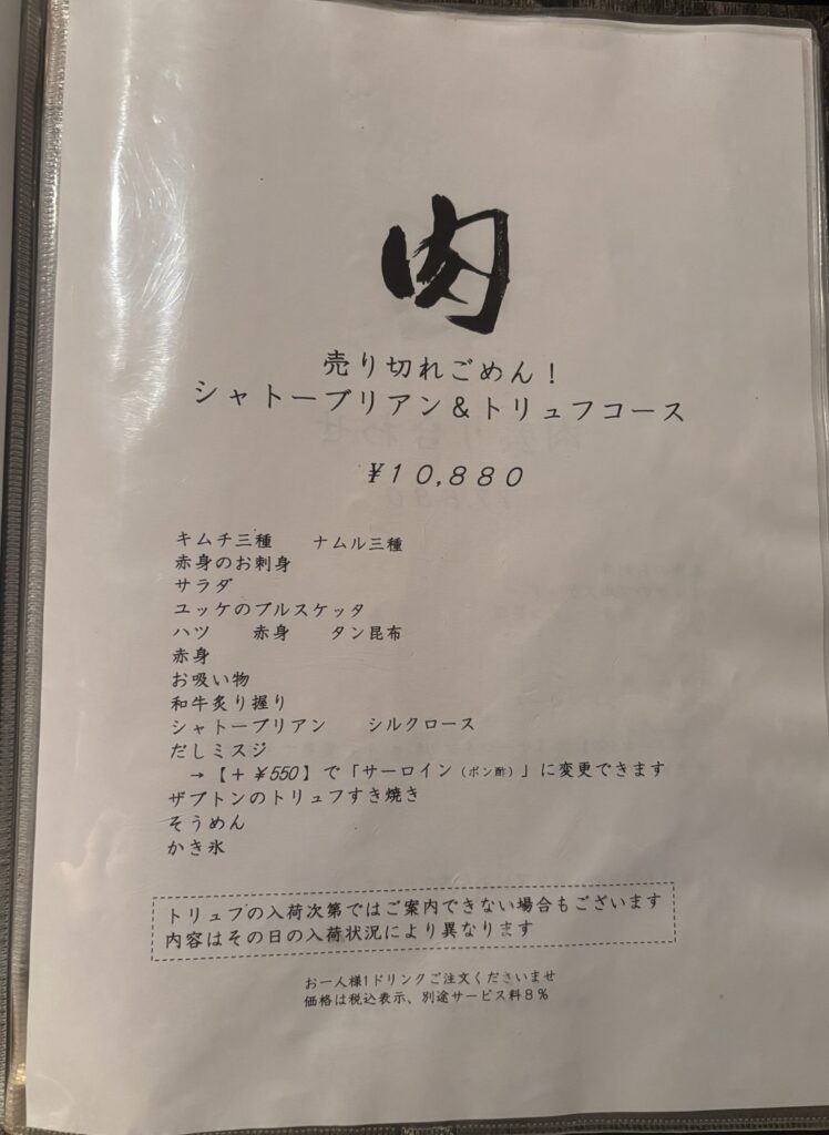 ちなみに今回のシャトーブリアンのメニューはこちら♡