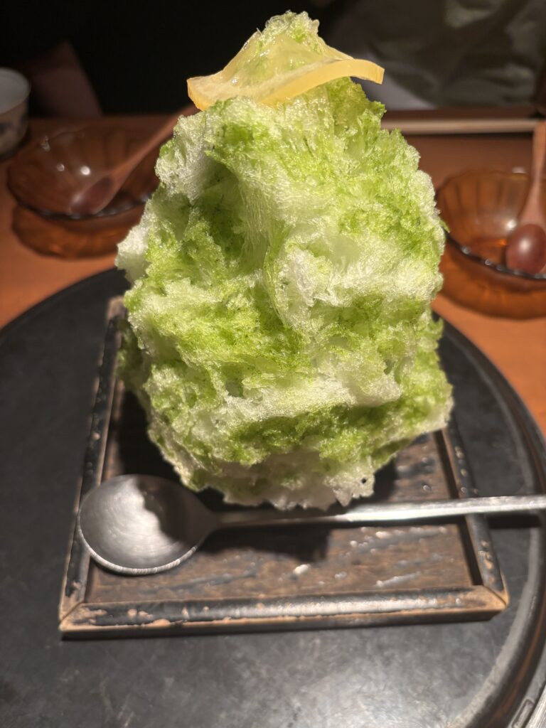 デザートにかき氷🍧味はバジルレモンにしたよ!珍しいけどあまじょっぱい!美味しい♡