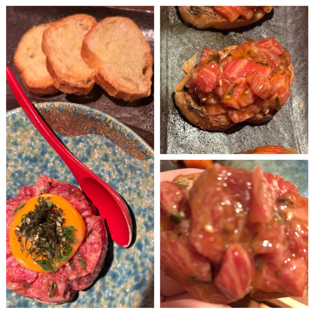 次はユッケのブルスケッタ!店員さんが混ぜて上に乗っけてくれるの♡美味しかった♡